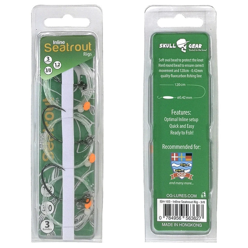 Färdiga riggar till dina genomlöpsbete! Riggarna är bundna på en kvalitets fluorocarbon och har en mjuk pärla som skyddar knuten och en hård pärla som ger mindre friktion.